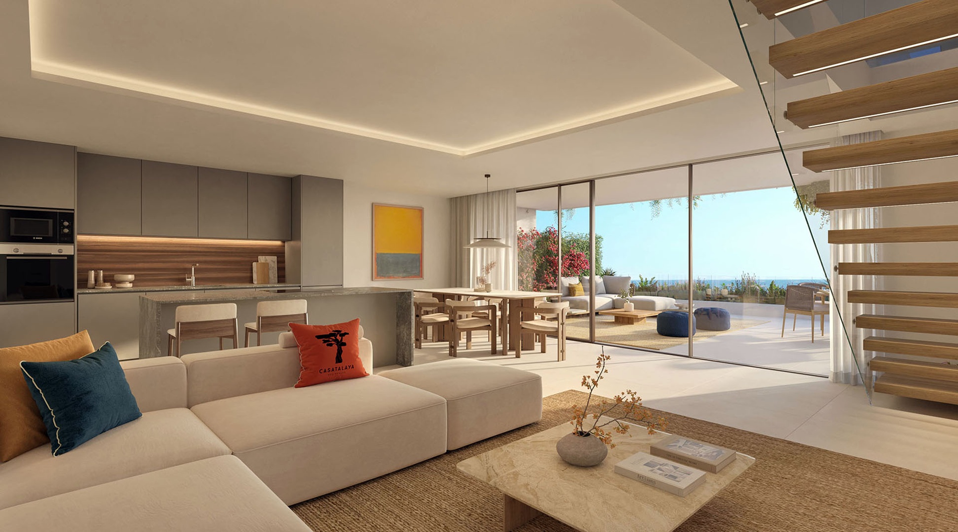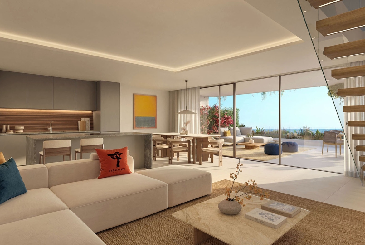 Discover elevated coastal sophistication in this striking 3-bedroom, 2-bathroom apartment at Casatalaya Residences, nestled in the exclusive Torremuelle area of Benalmádena Costa. Designed by SOB Arquitectos with interiors by Ismael Mérida, this residence combines modern luxury with a serene Mediterranean ambiance.