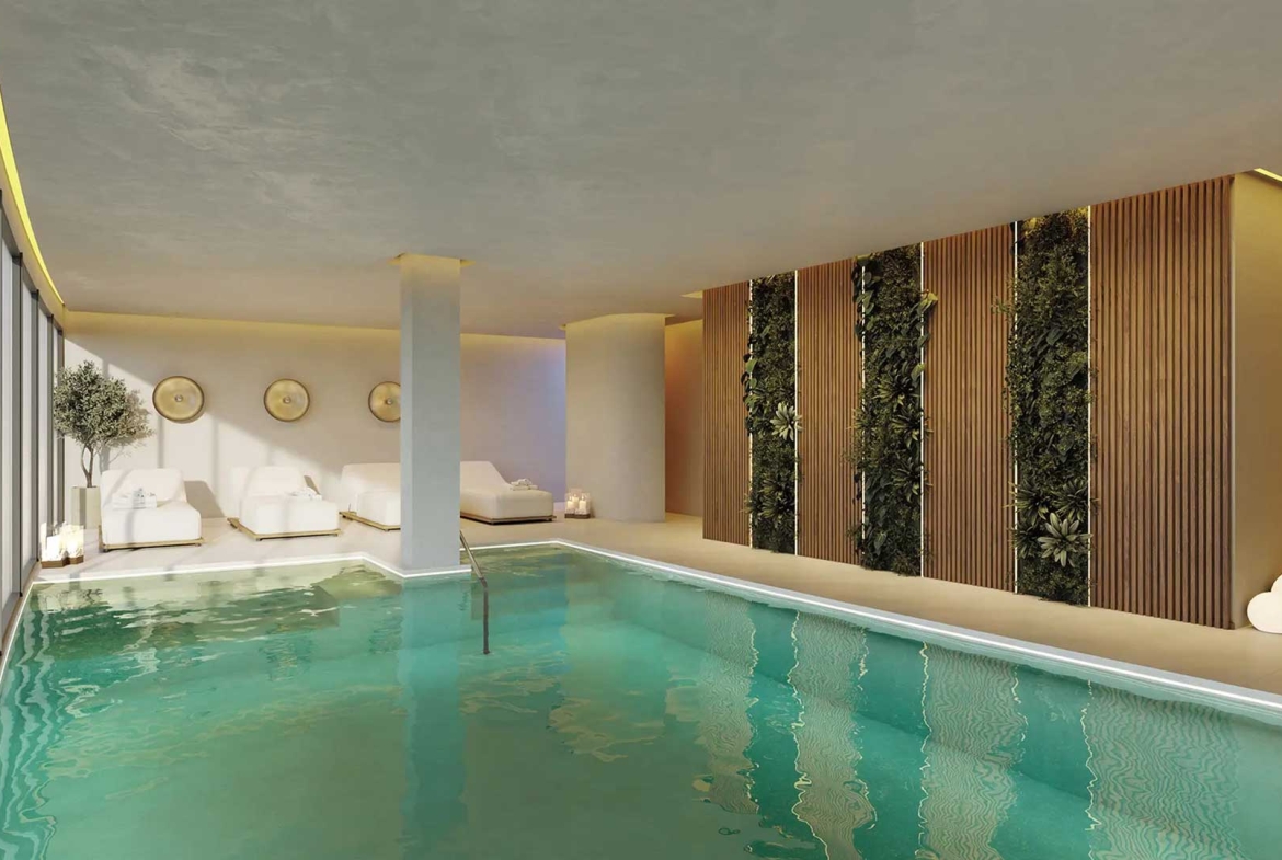 Gated community with resort-style facilities: outdoor & indoor pools, fitness suite, sauna & hammam