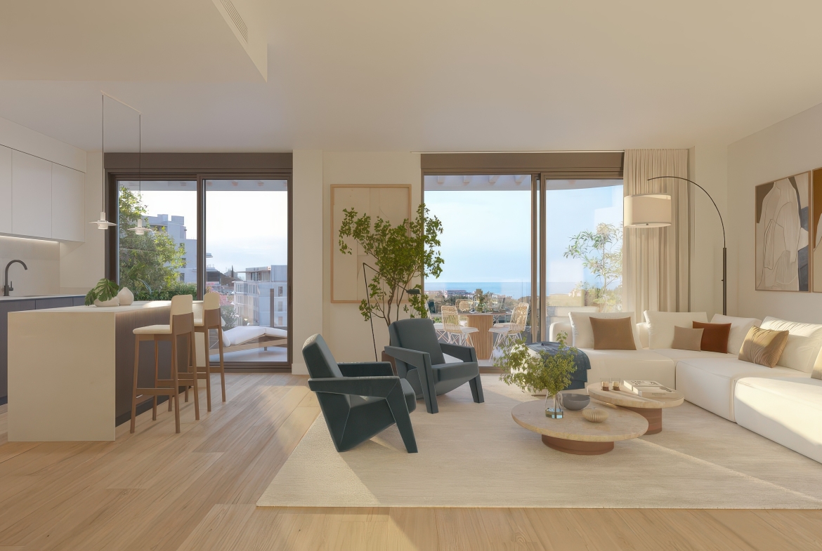 Discover modern Mediterranean elegance in this 2-bedroom, 2-bathroom apartment at The Kove, Mijas. A fresh new development due for completion in 2028, this residence offers spacious interiors, thoughtful design, and an open connection to the sea, mountains, and lush surroundings.