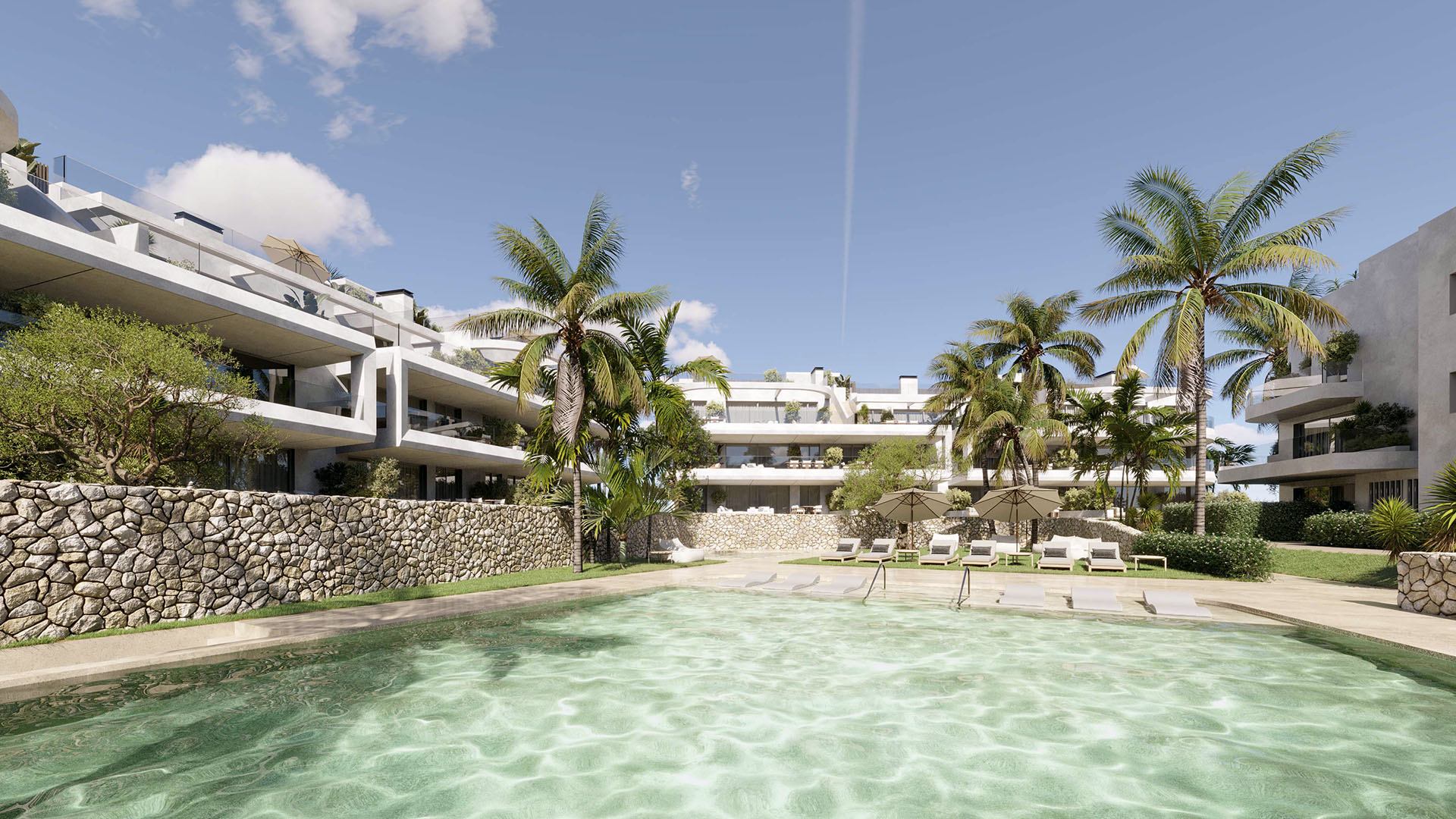 Step into coastal elegance with this beautifully designed one-bedroom apartment at The Palms at Estepona, where modern Mediterranean living meets thoughtful architecture. Nestled in the up-and-coming west side of Estepona, this property offers a perfect retreat combining style, comfort and convenience.